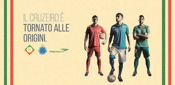 Confecionadas pela Penalty, as novas camisas do Cruzeiro trazem as cores das bandeiras brasileira, na parte lateral, e italiana, na manga direita.
